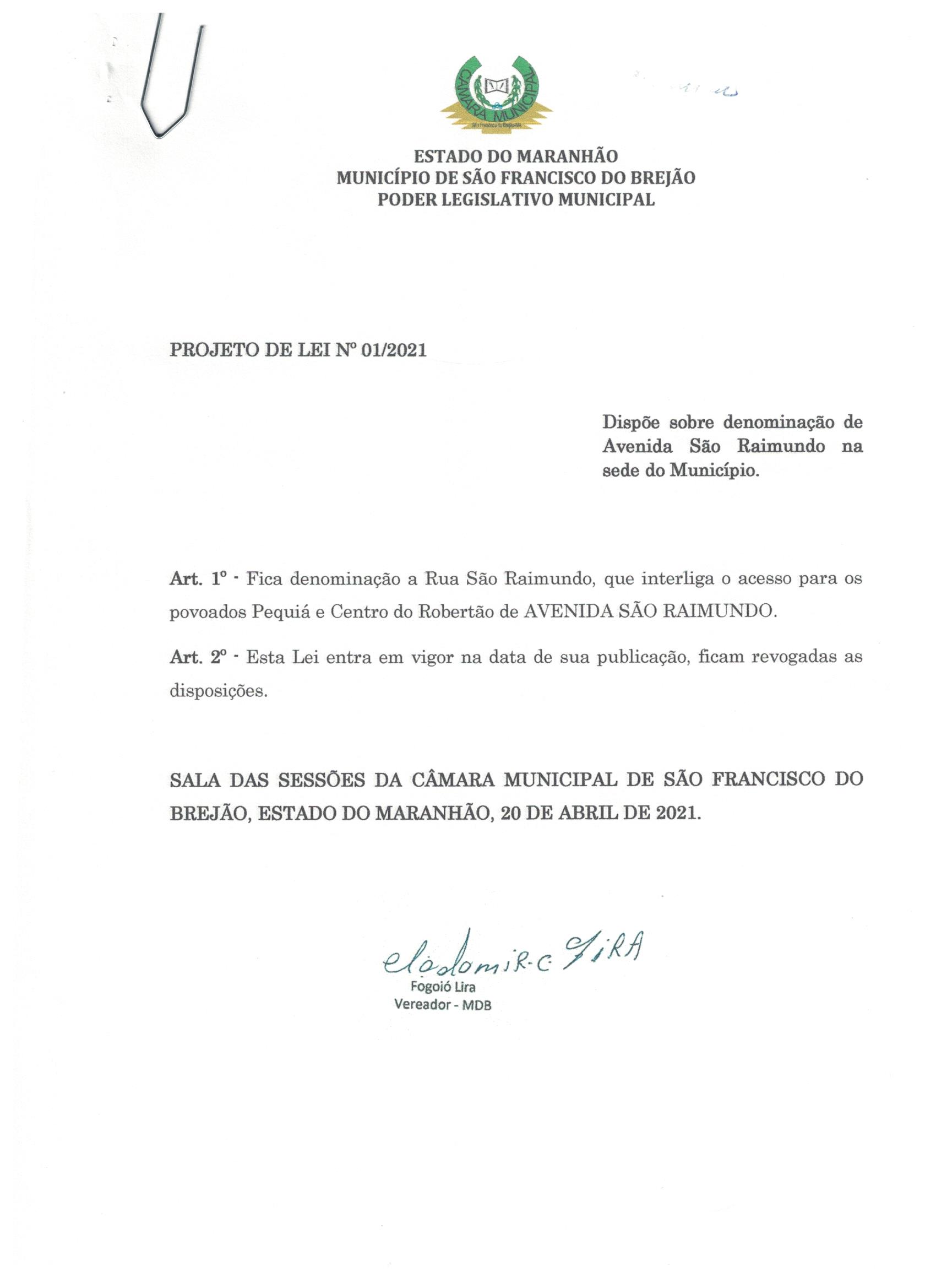 Projeto Nº 1/2021PROJETO DE LEI DO LEGISLATIVO Nº 01/2021 - CLODOMIR Baixar Votação Nominal